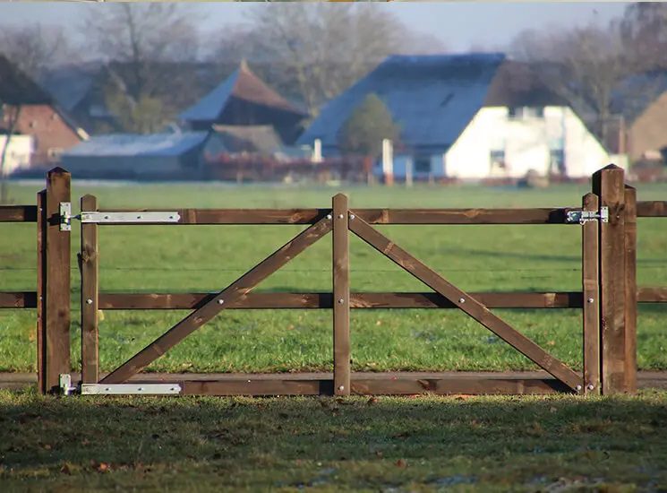 Vår engelska dubbelgrind “London” kan tack vare sin robusta utstrålning användas både som en avgränsning för gårdar och som ett landsgrind. Tillsammans med någon av våra autentiska staket skapar du en vacker enhet.
